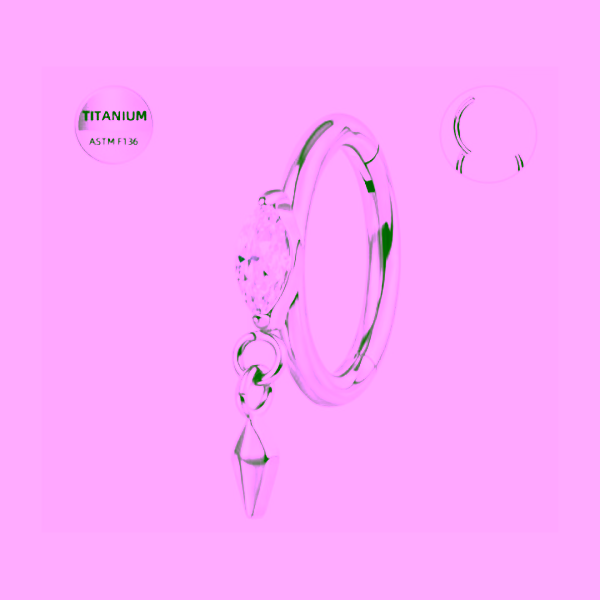 Piercing Inel Hinged Titan ASTM F136 Argintiu cu Piatra Marquise Clear & Charm Geometric – 1.2 × 8 mm