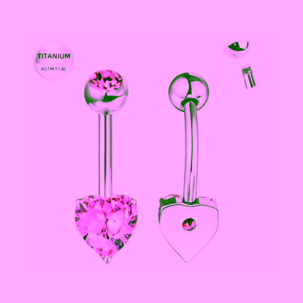 Piercing buric argintiu din titan cu inima din cristal roz– 1.6 × 10 mm