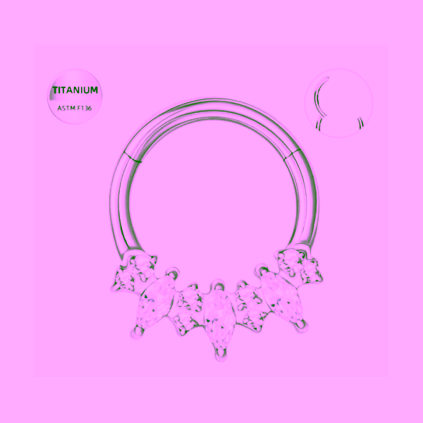 Acest piercing tip inel este realizat din titan de inalta calitate (ASTM F136), fiind ideal pentru pielea sensibila si purtare zilnica. Designul sau rafinat combina finisajul argintiu lucios cu detalii stralucitoare din cristale zirconia, evidentiate de o piatra centrala in forma de inima, de culoare roz intens.