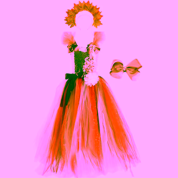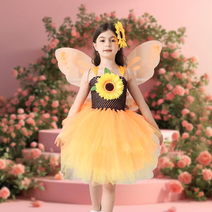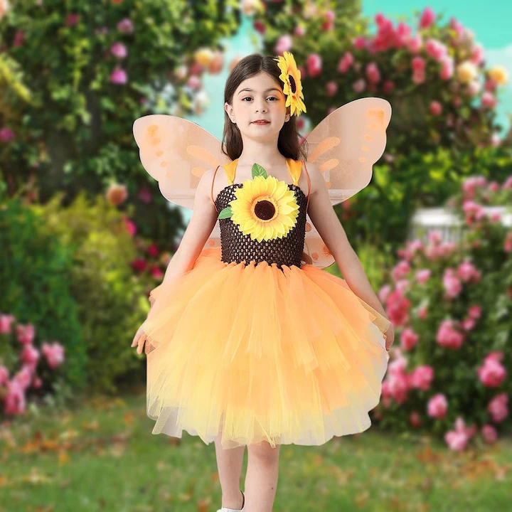 Costumul transmite bucurie, lumina si energie. Este ideal pentru serbari, sedinte foto, petreceri tematice sau pur si simplu pentru joaca. Imbina estetica florala cu magia unei zane, rezultand un look cald, solar si fermecator.