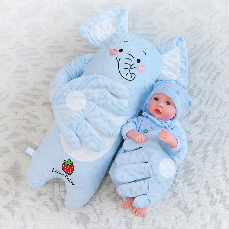 Perna multifunctionala pentru bebelusi, pentru un somn linistit, anticolici, pentru dezvoltarea independentei, pentru acasa si calatorii, 3 luni-2 ani, Elefant albastru