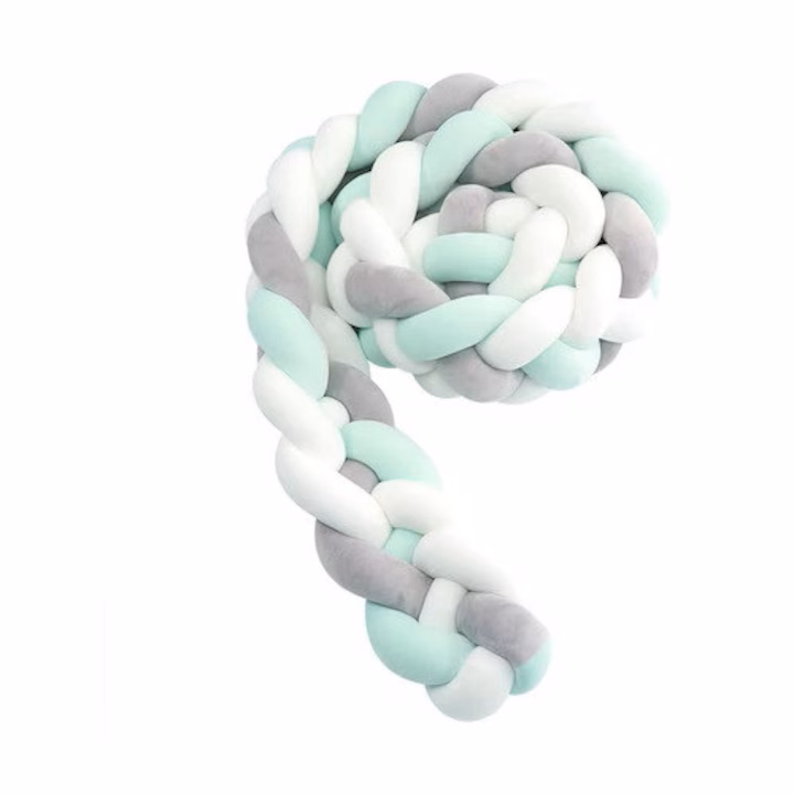 Protectie laterala patut bebelusi, Bumper, impletita, lungime 2 m, material antialergic, verde, gri, alb