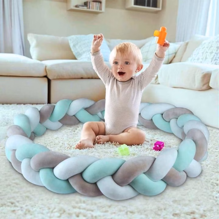 Utilizare: se ataseaza pe marginile patutului pentru a proteja copilul de lovituri sau de prins intre gratii. Poate fi folosita si ca decor, perna de sprijin sau bariera pentru joaca.