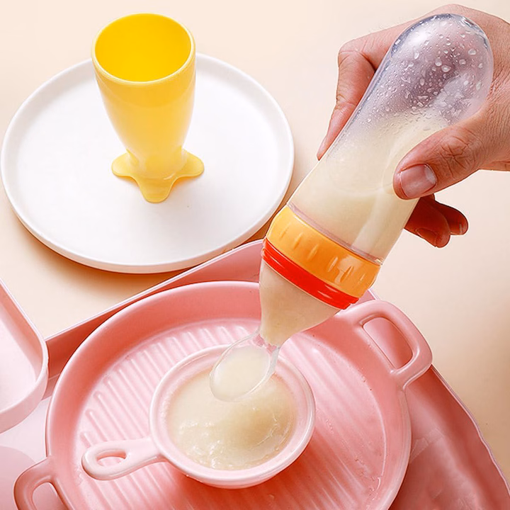 Mecanism de stoarcere – partea flexibila a biberonului permite parintilor sa apese usor, impingand continutul in lingurita.